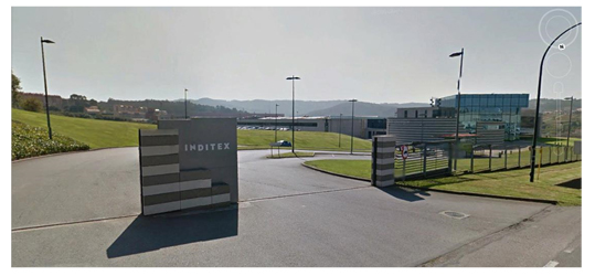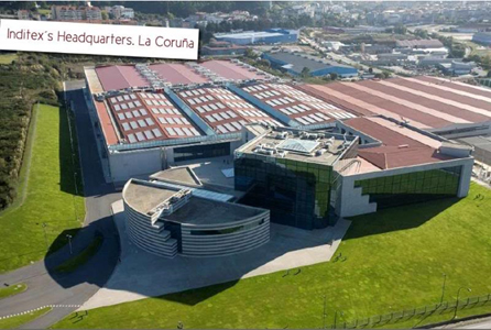 โรงงานของ Inditex หรือที่เรารู้จักกันในตราสินค้า ZARA ที่เมือง ลา คอรุนญ่า ประเทศสเปน มีลักษณะของฮวงจุ้ยที่ดี ส่งผลให้บริษัทเจริญรุ่งเรืองได้เป็นลำดับต้นๆของโลก แม้ว่าการจัดปรับฮวงจุ้ยในระบบวิชาการนั้นต้องใช้ความละเอียดและต้องพิจารณาในหลายเหลี่ยมหลายมุม แต่ก็พอที่จะสรุปหลักการในเบื้องต้นคร่าวๆ เพื่อให้เราสามารถนำไปปรับปรุงโรงงานในเบื้องต้น โดยเราควรเริ่มดูตั้งแต่ภาพรวมของที่ดินของตัวโรงงานของเรา หากเป็นไปได้ภาพรวมการวางอาคารโรงงานเมื่อเทียบกับตัวที่ดินต้องไม่ดูอึดอัดจนเกินไป เพื่อให้กระแสพลังนั้นไหลเวียนเข้าไปหล่อเลี้ยงอาคารโรงงานได้ทุกๆโรง หากสามารถมีทางรถวิ่งหรือทางเดินรอบๆโรงงานได้จะถือว่าดีมาก แต่หากไม่ได้จริงๆเพราะพื้นที่ที่ดินจำกัด การที่มีถนนทางรถวิ่งหรือทางเดิน เชื่อมกับอาคารโรงงานได้ทุกโรงในบริเวณที่ดินก็ถือว่าทำให้มีฮวงจุ้ยที่ดีมากพอสมควร เพราะหากมองตามหลักความเป็นจริงประกอบเข้าไปด้วย ก็จะพบว่าหากการขนส่งคมนาคมภายในที่ดินโรงงานของเราสะดวก เราก็จะมีความยืดหยุ่นในเรื่องของการผลิต ซ่อมบำรุง เก็บสต๊อค หรือการขนส่งสินค้าและวัตถุดิบได้เป็นอย่างดี