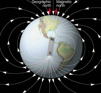 ภาพจำลองแนวกระแสแม่เหล็กของโลก |