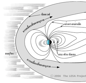 ภาพจำลองกระแสแม่เหล็กของโลกในขณะที่โลกโคจร |