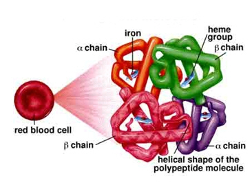 ภาพแสดงส่วนประกอบของเม็ดเลือดแดงว่ามีธาตุเหล็ก (Iron) ประกอบอยู่ |